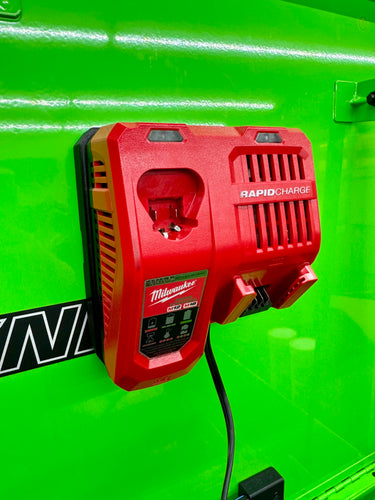 This M18/M12 Rapid Charger Magnetic 48-59-1808 mounts securely with (4) 150lb magnets and rubber stoppers, keeping it easily accessible and clutter-free. Made with PETG material and a convenient cable slot, it's the perfect solution for organizing your workspace.