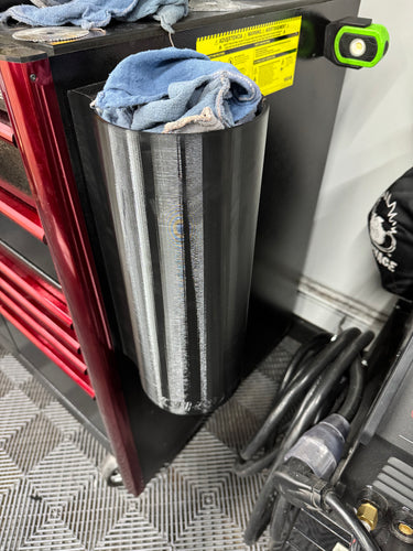 Keep your workspace clean and organized with our Magnetic Shop Rag Holder. Made out of durable PETG material, this holder stands 16 inches tall and can hold up to 30 rags. With two 65lb magnets on the back, your rag holder will stay securely in place. Say goodbye to messy trash bags on your roll cart or toolbox.